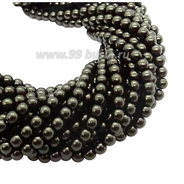Бусина стеклянная жемчуг (иск.) на нити 4 мм цвет темный оливково-коричневый Чехия 60 штук