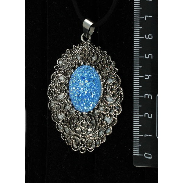 • Кулон c кабошоном из пластика "щетка кристаллов",  цвет морская волна, овал 25х18мм, филигрань