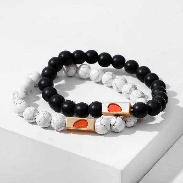 Браслеты "Неразлучники" сердце с бусинами, цвет чёрно-белый, шар №8