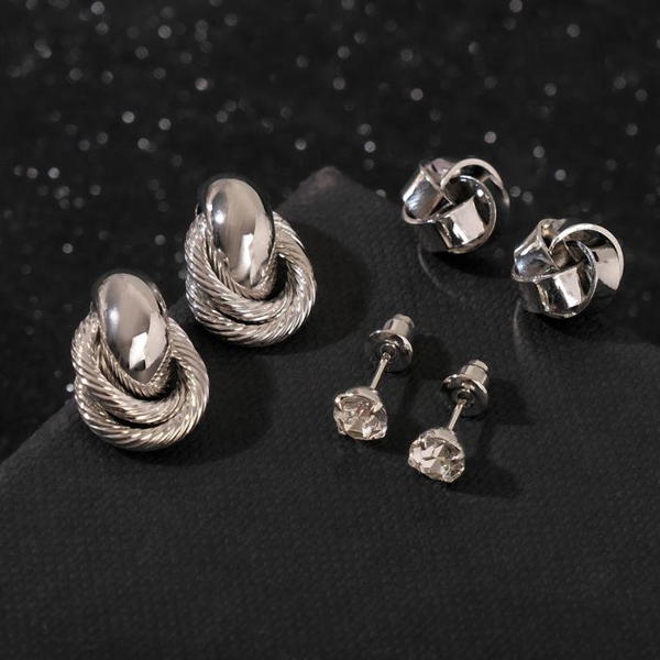 Серьги набор 3 пары "Нежность" кольца сатурна, цвет белый, цвет серебристый