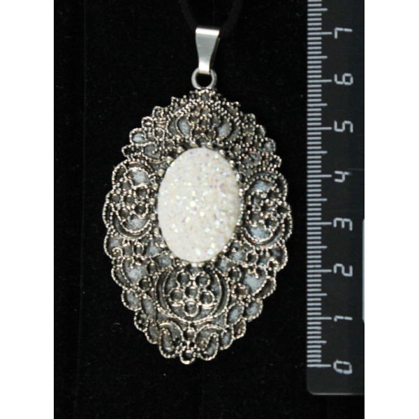 Кулон c кабошоном из пластика "щетка кристаллов", цвет белый, овал 25х18мм, филигрань