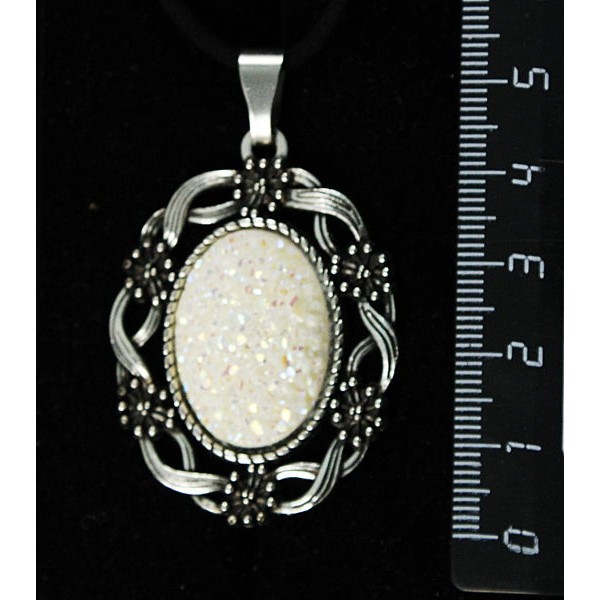 • Кулон c кабошоном из пластика "щетка кристаллов", цвет белый, овал 25х18мм, оправа "торжество"