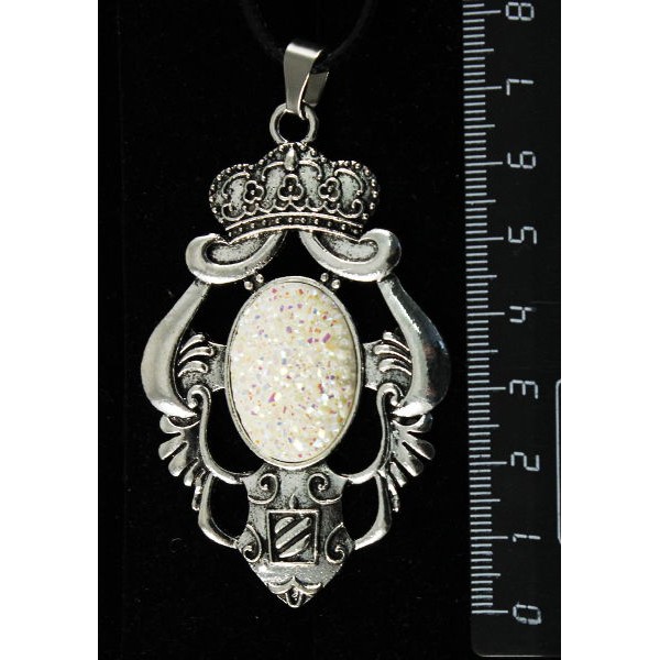 • Кулон c кабошоном из пластика "щетка кристаллов", цвет белый, овал 25х18мм, оправа "императрица"