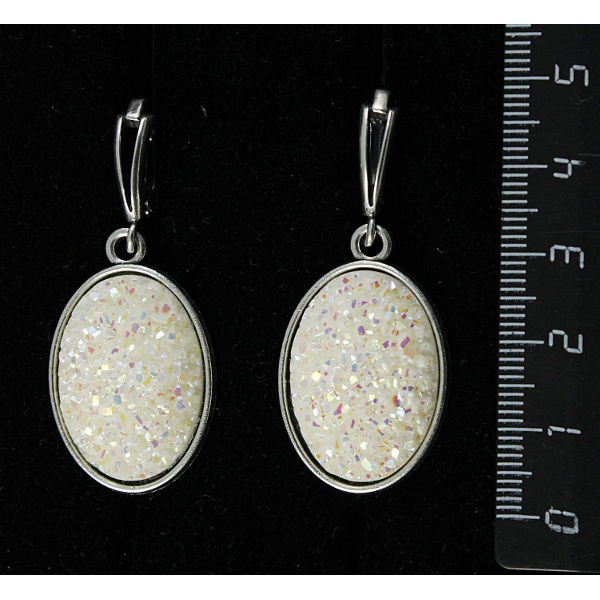 Серьги c кабошоном из пластика "щетка кристаллов", цвет белый, простой овал 25х18мм, швензы посеребрение