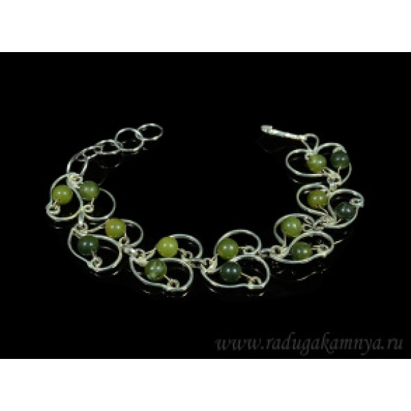 • Браслет нефрит в посеребрении, 16см.