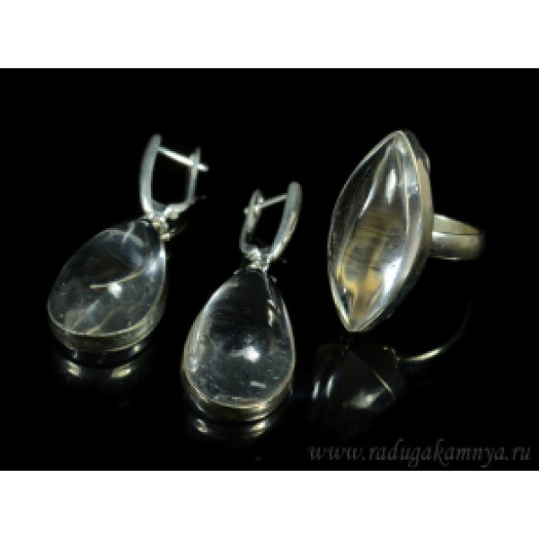 Кольцо и серьги горный хрусталь