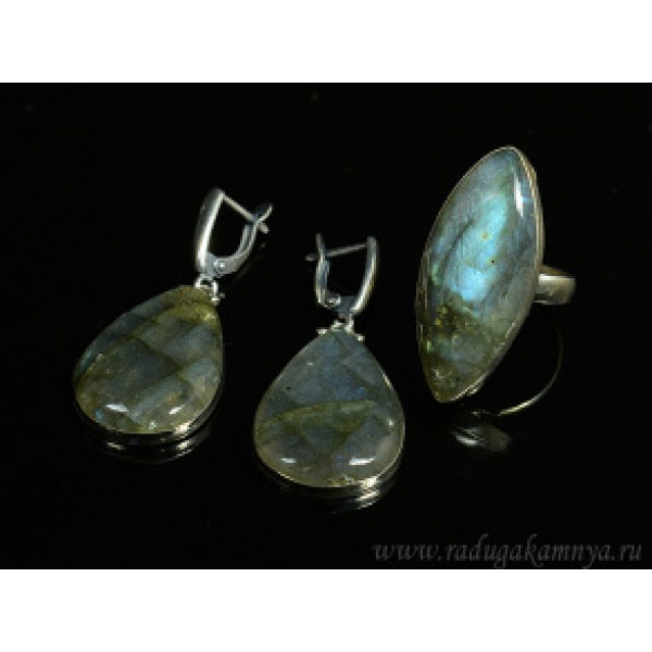 Кольцо и серьги из лабрадорита, овал 24х12мм р-р 1..
