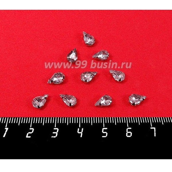 Стразы АКРИЛОВЫЕ пришивные в цапах "капелька" Мини 8*5 мм, цвет бесцветный прозрачный, 10 штук/упаковка