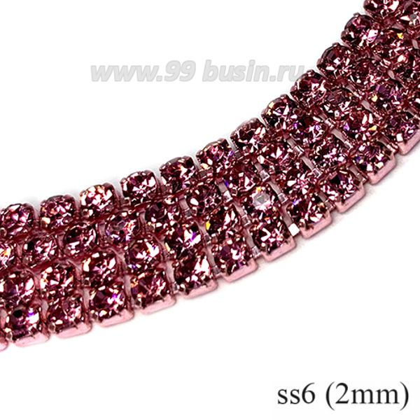 Стразовая цепочка 2 мм (ss6) цвет розовая камелия (металл под цвет страз) Тайвань 0,5 метра
