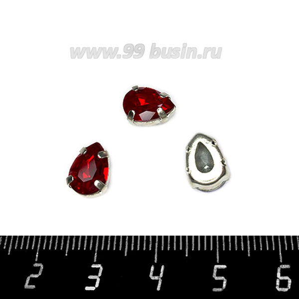 Стразы Капля 13*8 мм красный/оправа серебро, 1 шту..