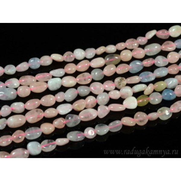 Бусины берилл аквамарин, морганит галтовка 6-9мм, 39см, 51 бусина