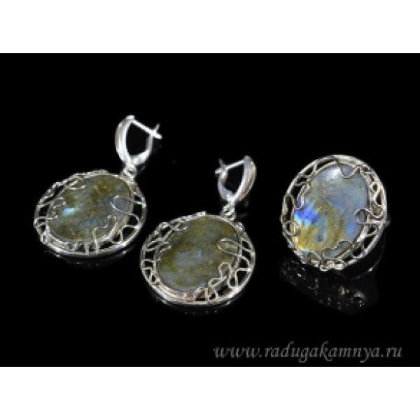 Кольцо и серьги с лабрадором