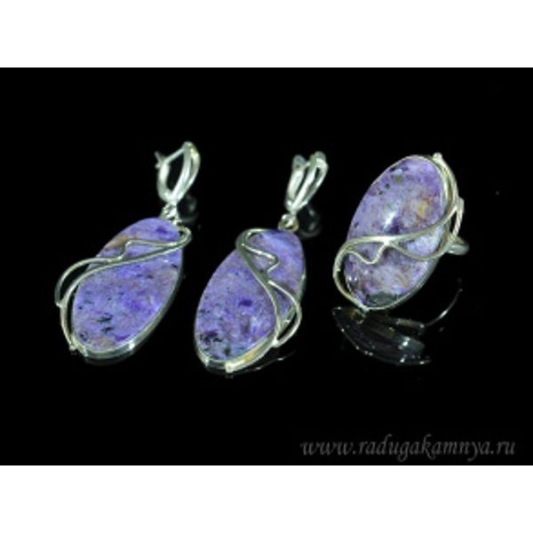 C925 Кольцо и серьги чароит 17.8г овал 26х18мм р-р..