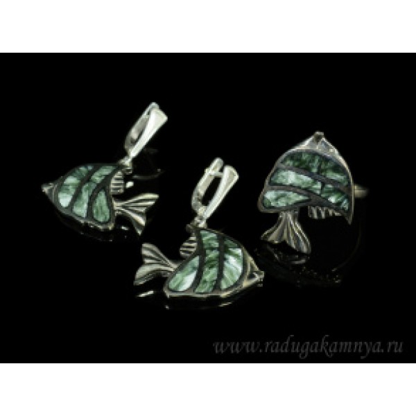 • Кольцо и серьги с серафинитом "Рыбка" 27*мм